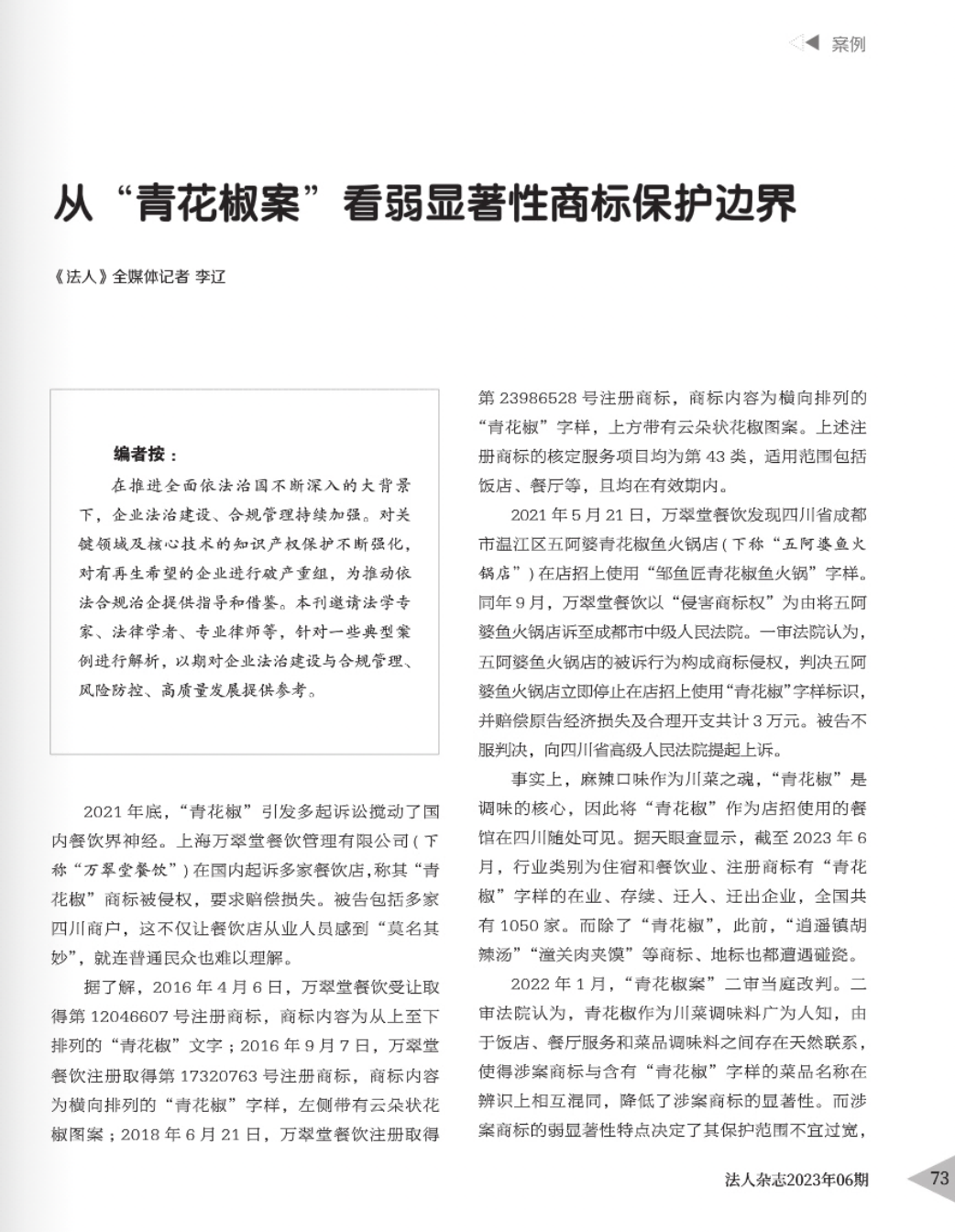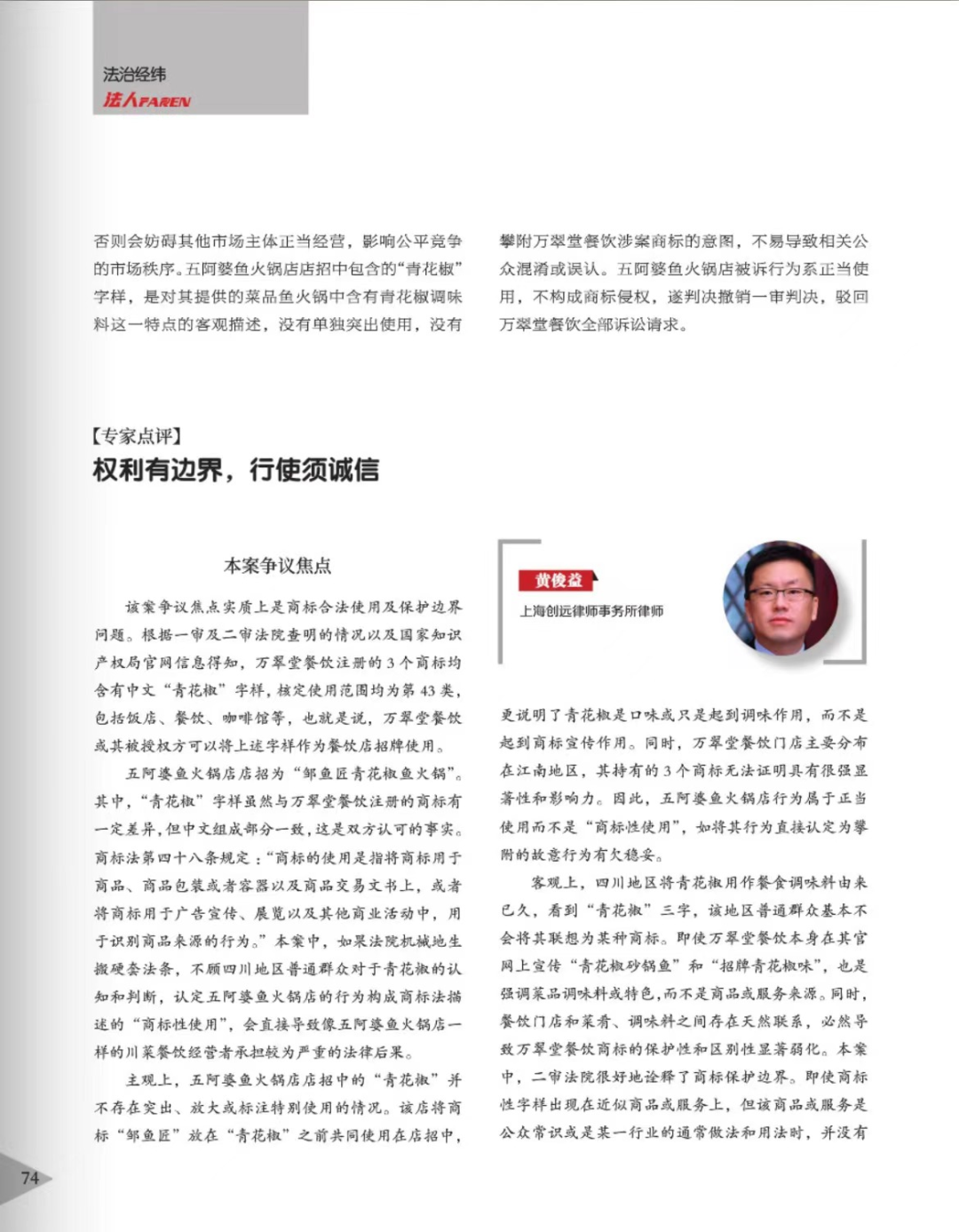 商丘辉知简讯 | 辉知队黄俊益律师应“法治日报”旗下杂志邀请,就“青花椒”案发表专家点评