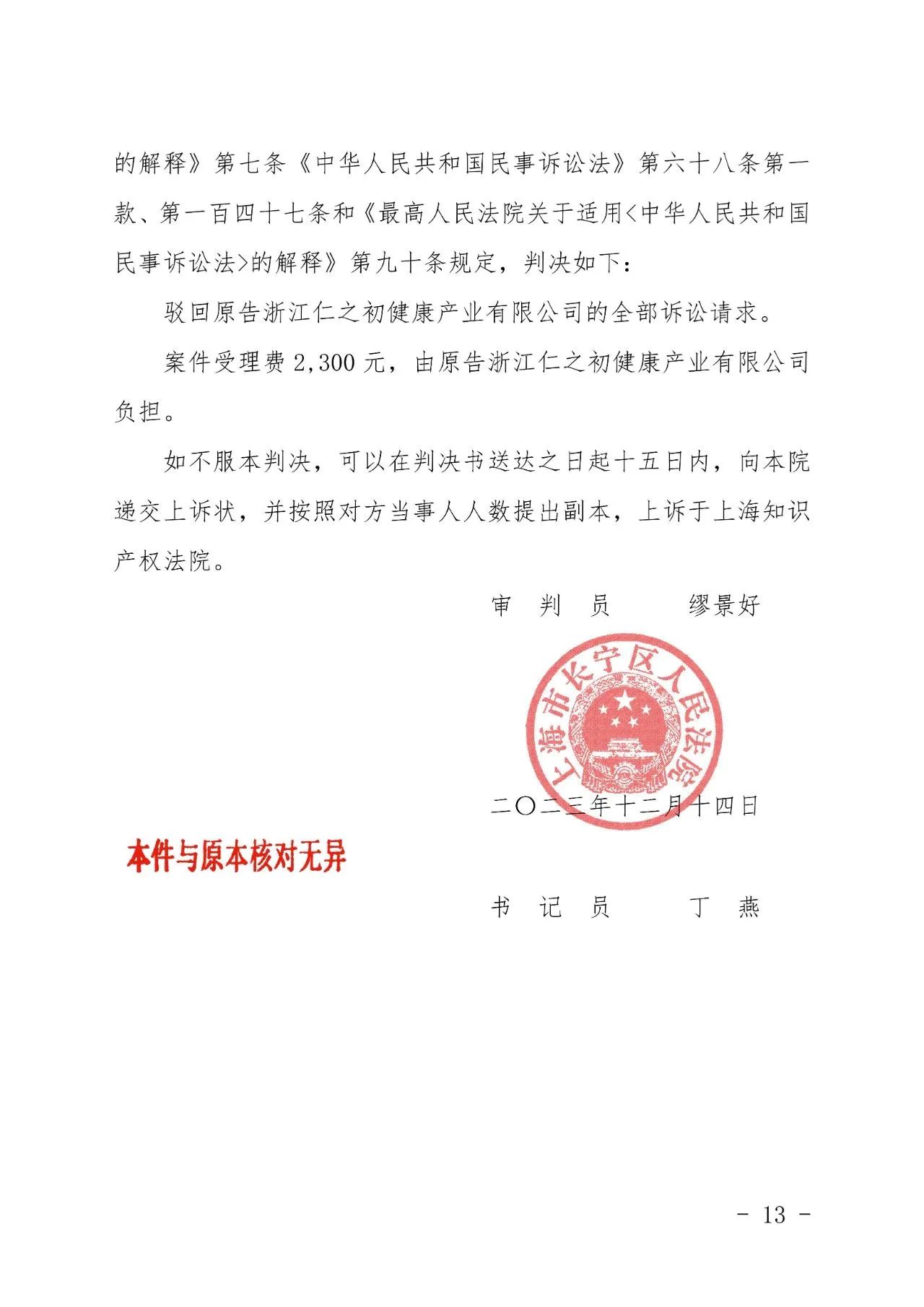 商丘辉知胜诉佳讯 | “仁之初健康”著作权及不正当竞争纠纷案,法院:驳回全部诉讼请求!